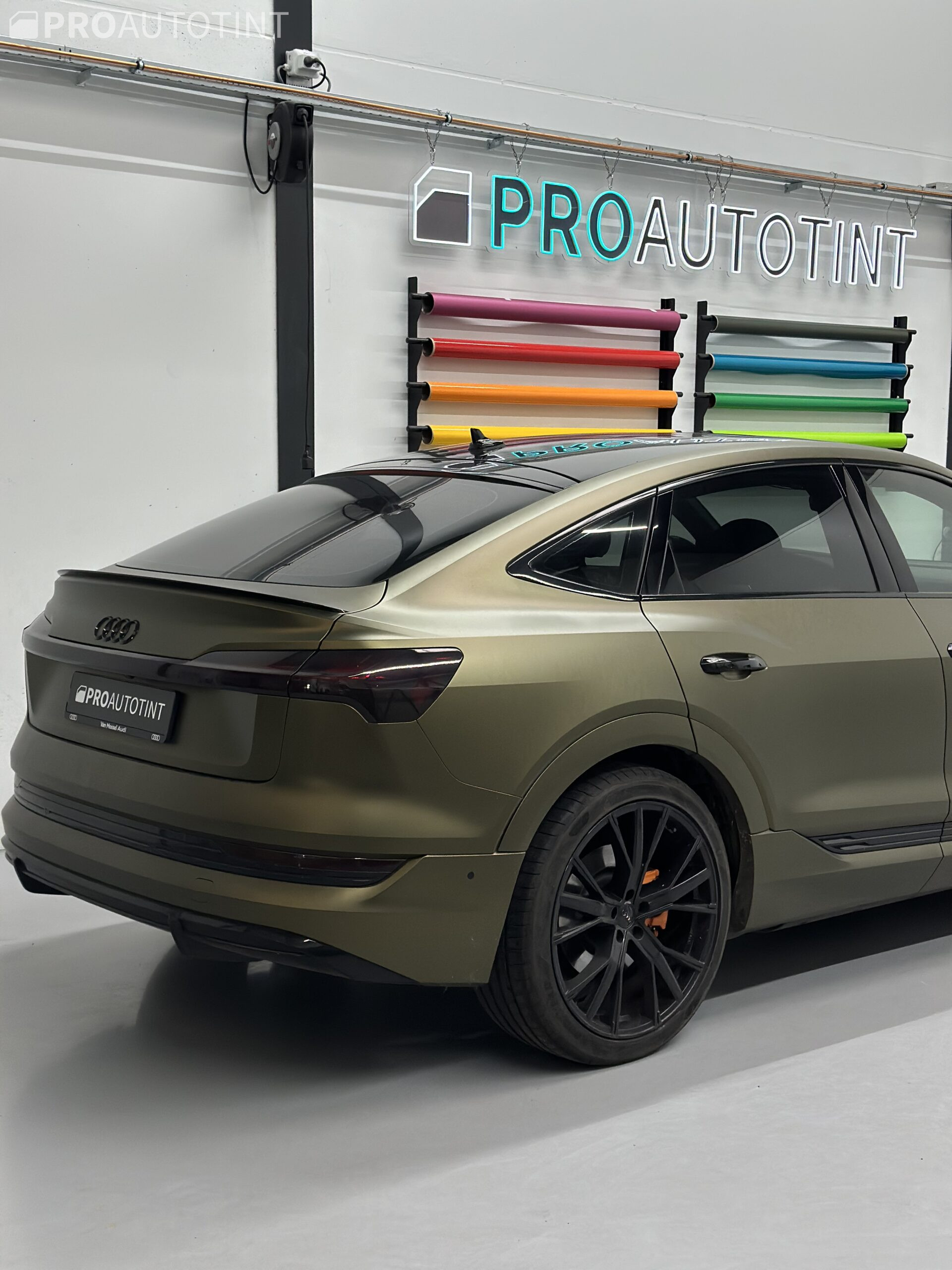 Met een car wrap voor uw Audi beschermt u de lak optimaal tegen allerlei vormen van schade en bevuiling. Daarnaast geeft een car wrap voor Audi uw auto een strak uiterlijk. Er zijn verschillende kleuren en prints beschikbaar, zoals het populaire matt zwart. Gaat u liever voor goud? Dan heeft ProAutotint dat ook in het assortiment. Voor een stoere look gaat u voor Camo. Wilt u graag een wrap voor uw Audi, maar nog wel de auto kunnen zien? Dan is de doorzichtige wrap optimaal voor u.